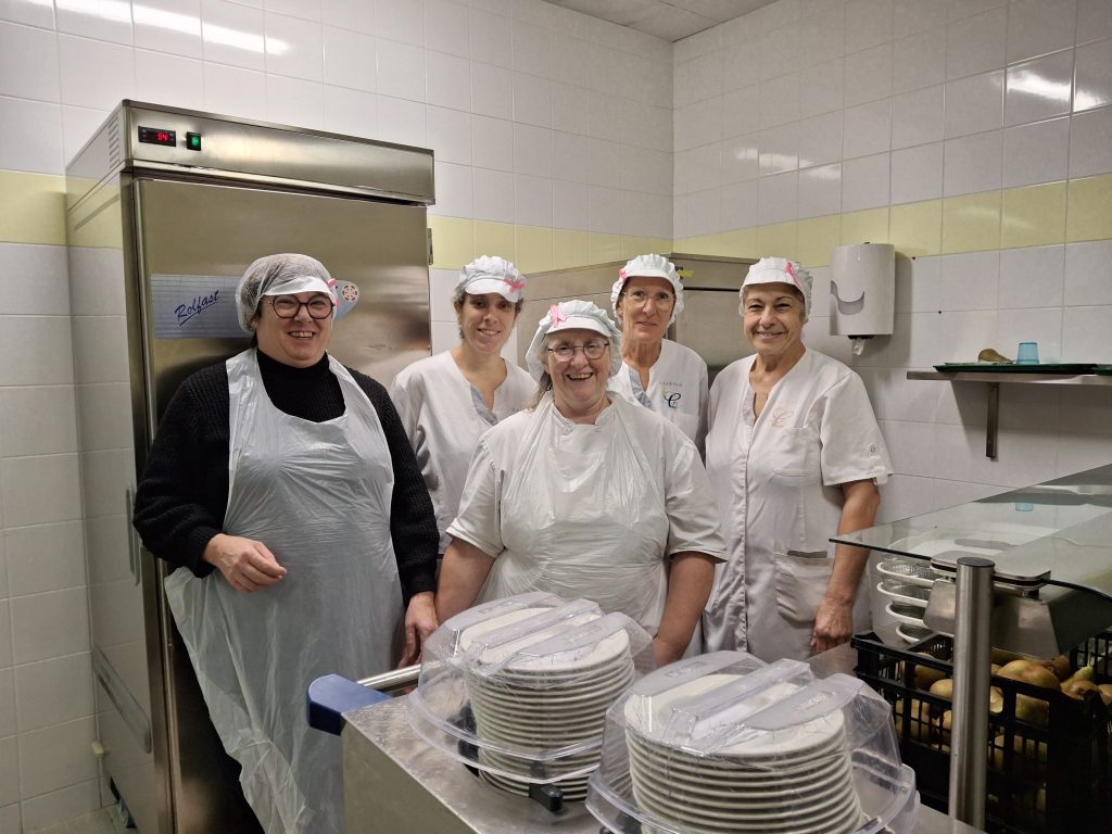 Pour les deux restaurants scolaires des Capucins et de la Croix de l’Olivier, pas moins de 350 repas sont servis en période scolaire, environ 70 le mercredi pour l’Accueil de Loisirs, par l’équipe de cuisine.