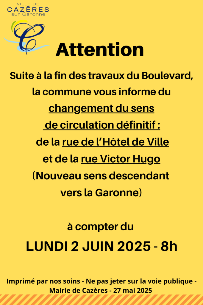 Attention : changement de sens de circulation rues Hôtel de Ville et Victor Hugo