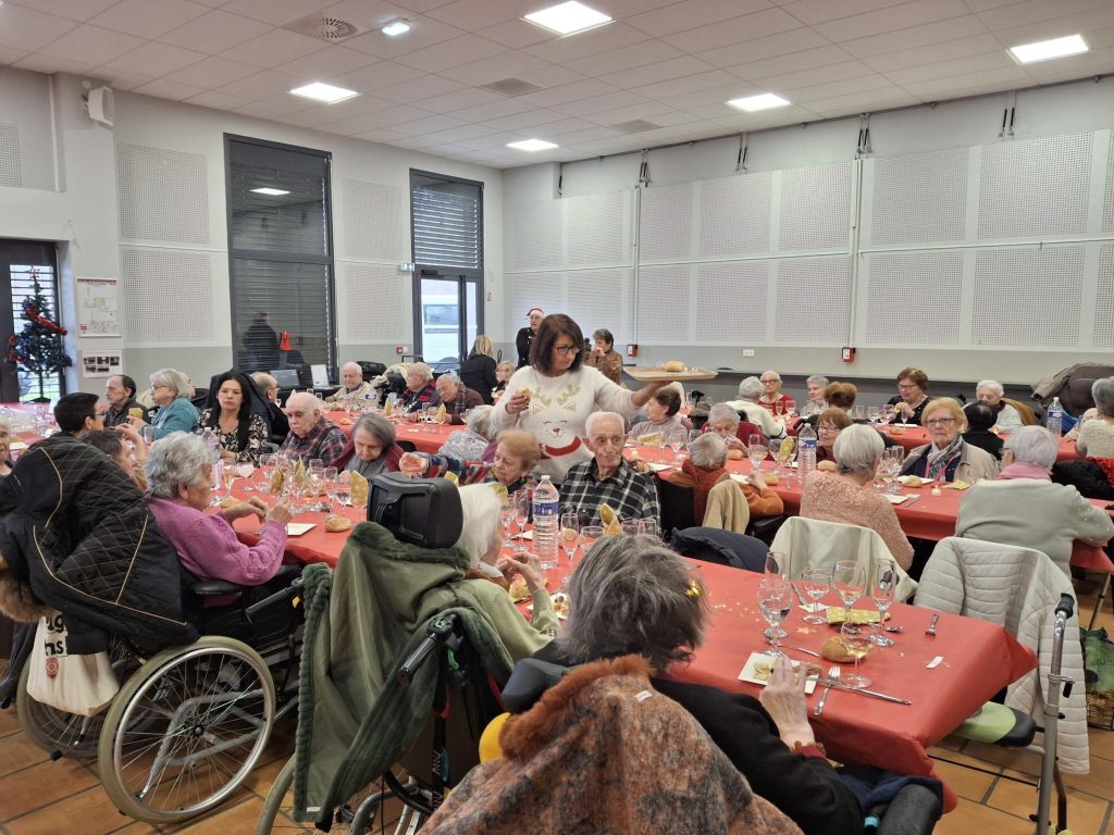 Ce jeudi 19 décembre, ils étaient plus de 280 à participer au repas organisé par la Municipalité, dont 73 résident(e)s de la Maison de retraite Jeanne Penent. Soit plus de 80 personnes de plus que l’année précédente.