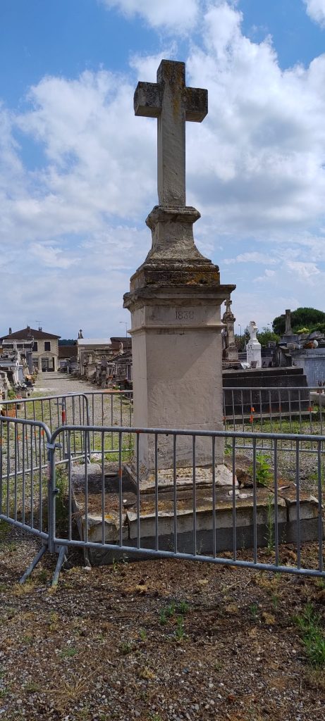 Cette statue était installée sur une tombe datant de 1830/1850. La concession ayant fait l’objet d’une procédure d’abandon en 2011, elle est devenue la propriété de la municipalité de Cazères en 2015. Nous l’avons inscrite au Patrimoine communal avec 12 autres monuments.