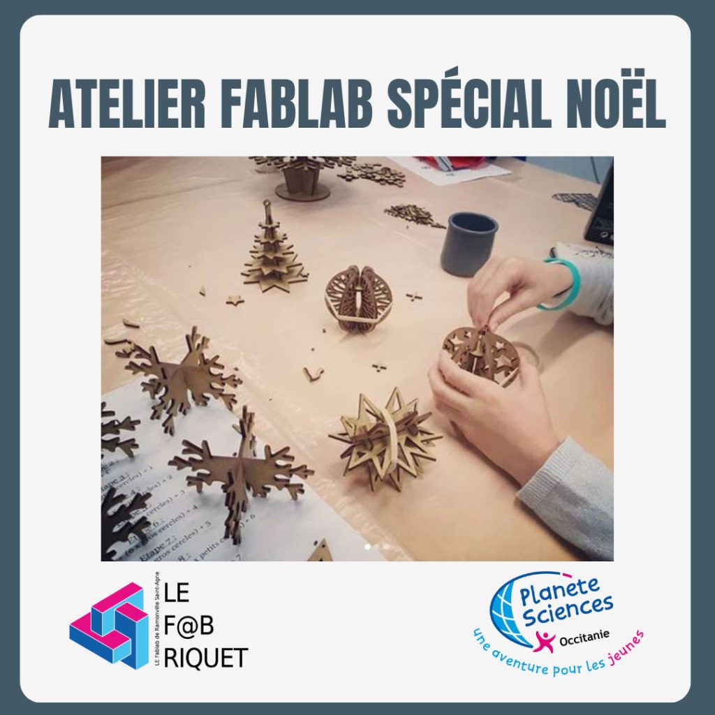Le samedi 2 décembre, à la Médiathèque, à 14h, un atelier Fablab de Noël vous est proposé par Planète Sciences Occitanie.