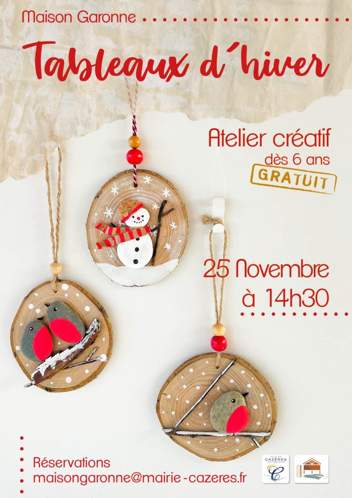 Le samedi 25 novembre, à 14h30, à la Maison Garonne, venez créer de petites scènes sur le thème de l’hiver à l’aide de matériaux naturels ou recyclés