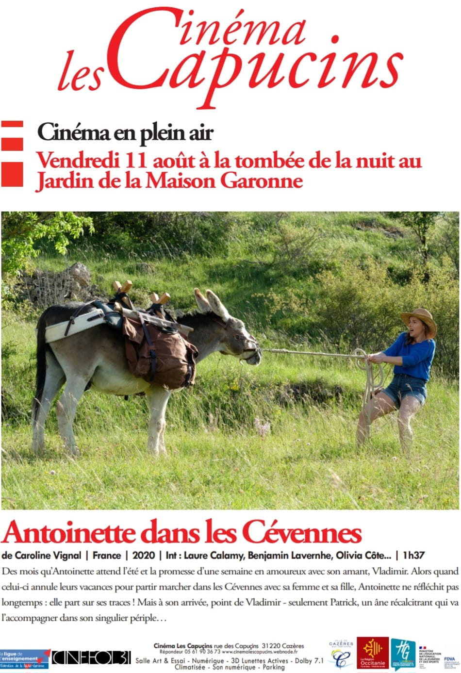 Projection en extérieur le vendredi 11 août 2023 au jardin de la Maison Garonne du film « Antoinette dans les Cévennes » une comédie Française.