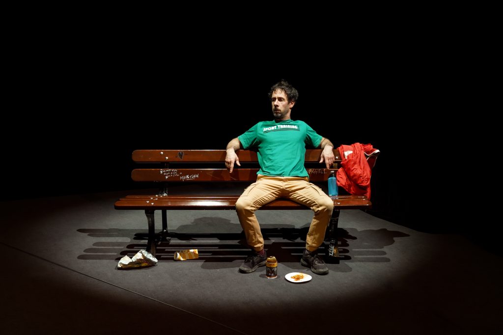 Entre deux exercices de musculations, il vous livre un récit absurde et mordant (griffant ?) où se mêlent cirque et stand-up.
