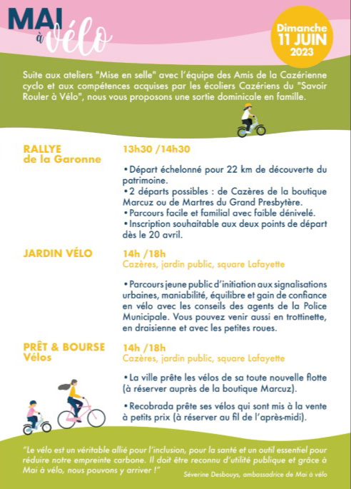 Découverte en vélo du patrimoine et des sites remarquables du territoire : Cazères, Palaminy, Martres Tolosane, Mauran et Couladère.