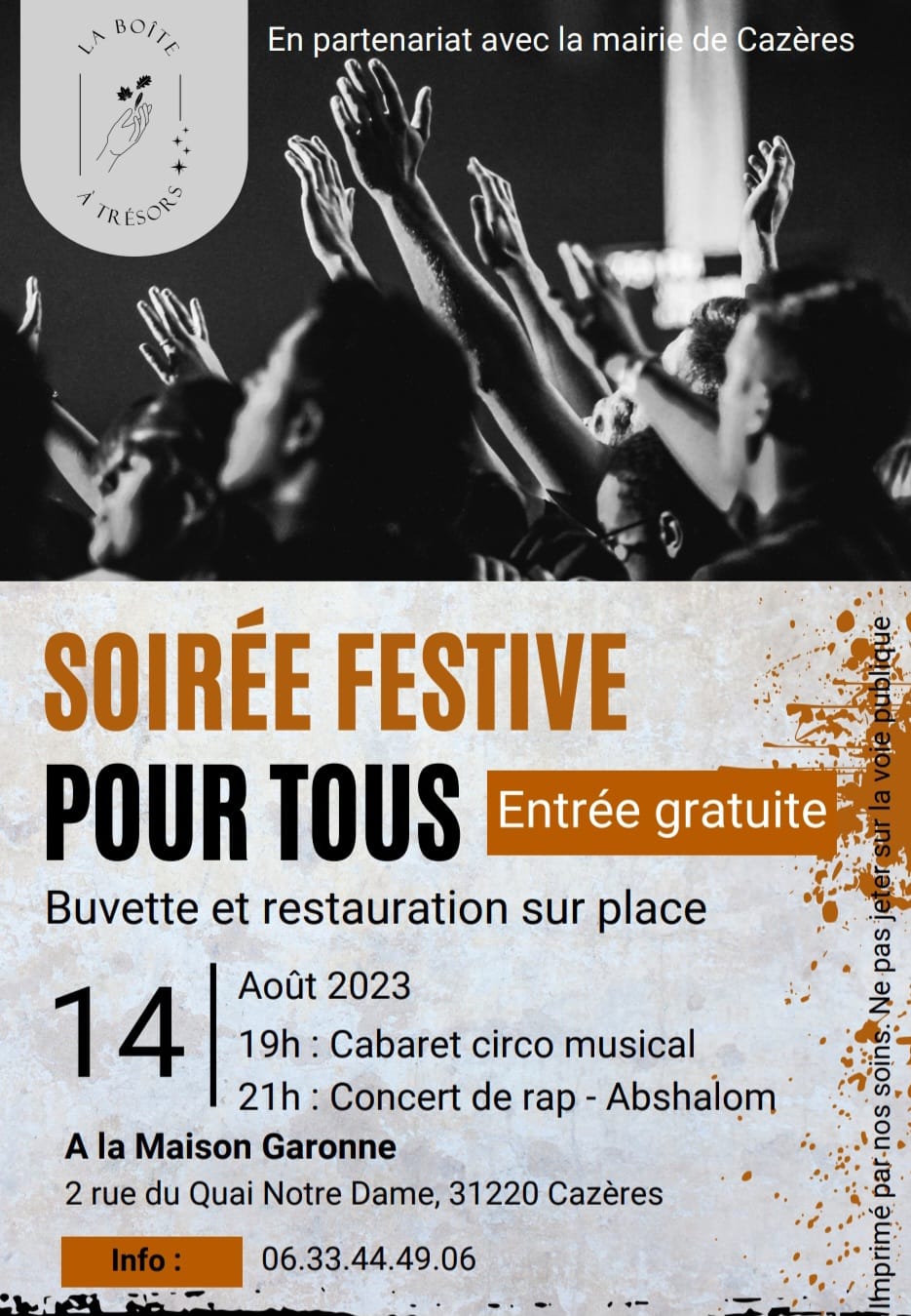 Le lundi 14 août 2023, à la Maison Garonne, La Boîte à Trésors organise une soirée festive.