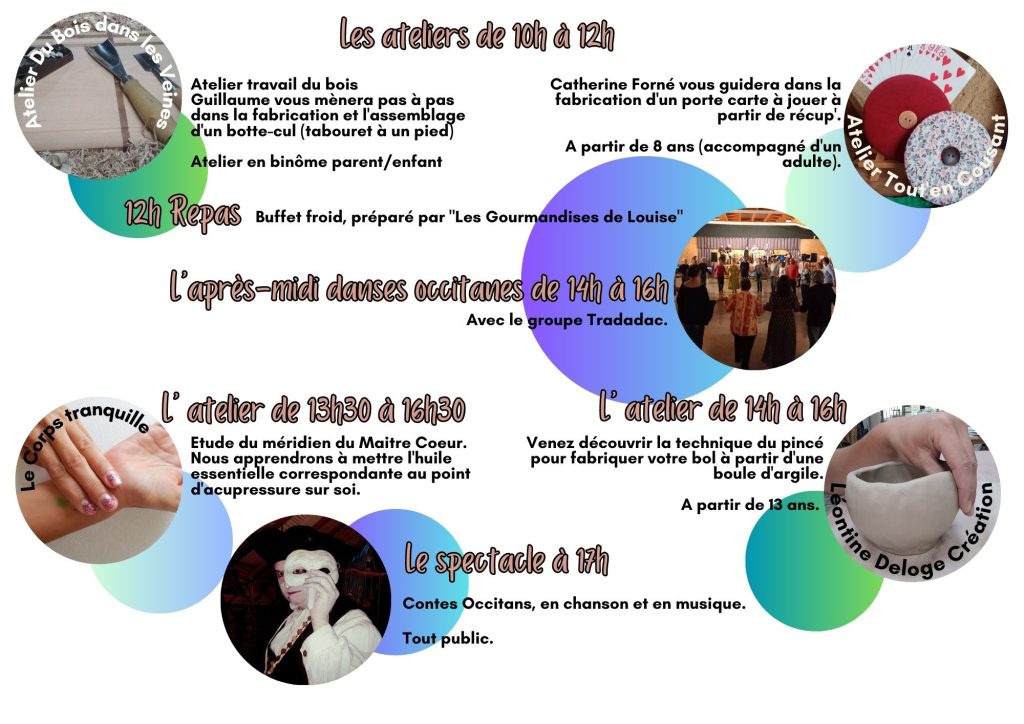 Au programme : Ateliers créatifs, repas, danses occitanes et spectacles.