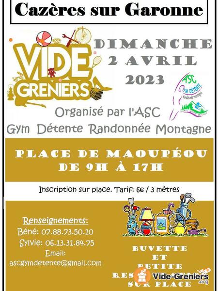 Dimanche 02 Avr. 2023 Vide-greniers De 9h à 17h Le 02/04/2023 Place de Maoupéou Buvette et petite restauration sur place