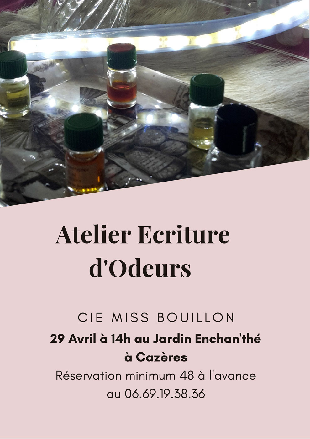 Samedi 29 Avr. 2023 Atelier Ecriture d’Odeurs À partir de 14h Le 29/04/2023 Le Jardin Enchan'thé Réservation minimum 48h à l'avance