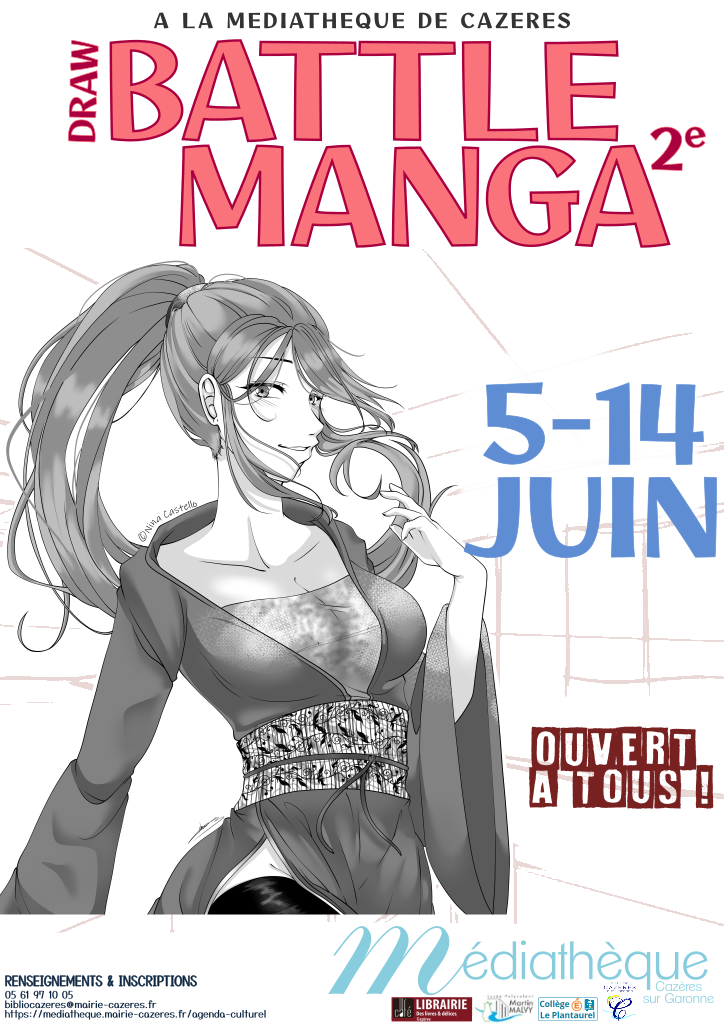 Lundi 05 Juin 2023 Battle Manga 2e Du 05/06/2023 au 14/06/2023 Ouvert à tous ! Médiathèque Renseignements et inscriptions : 05 61 99 10 05