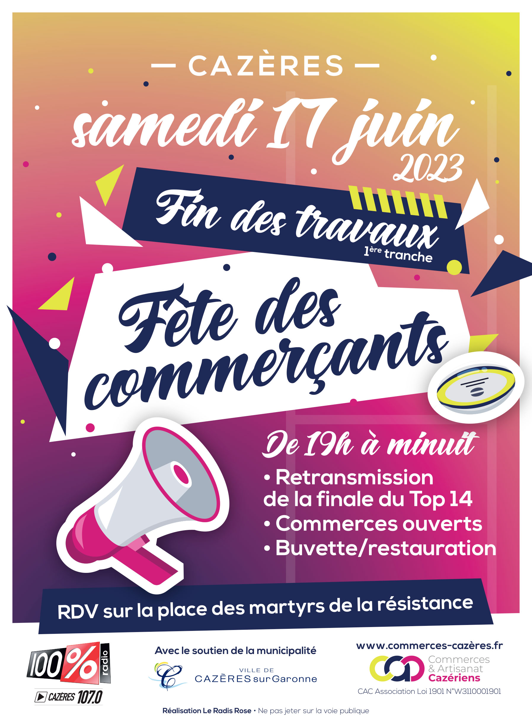Samedi 17 Juin 2023 Fête des commerçants À partir de 19h Le 17/06/2023 Ouvert à tous ! Place des Martyrs de la Résistance Retransmission de la finale du Top 14, buvette, restauration...