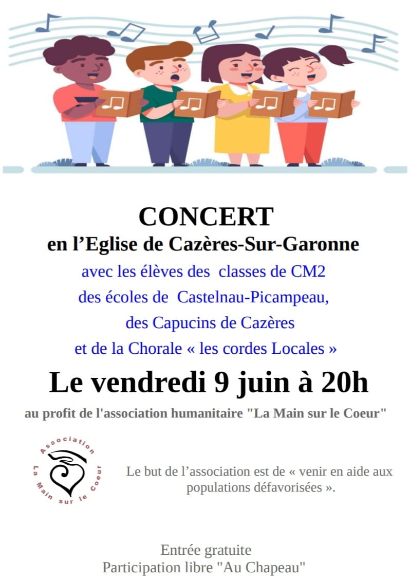 Vendredi 09 Juin 2023 Concert La Main Sur le Cœur À partir de 20h Le 09/06/2023 Entrée gratuite. participation libre "au chapeau". Eglise Notre Dame