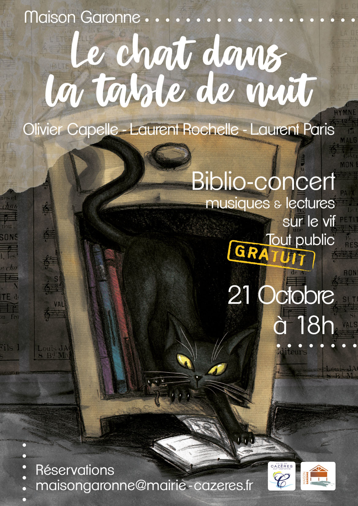 Samedi 21 Oct. 2023 Le chat dans la table de nuit À partir de 18h Le 21/10/2023 Gratuit Maison Garonne Tout public
