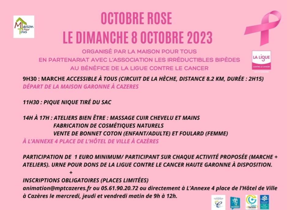 Dimanche 08 Oct. 2023 Octobre rose à la Maison Pour Tous Le 08/10/2023 Participation libre Annexe, Maison Garonne