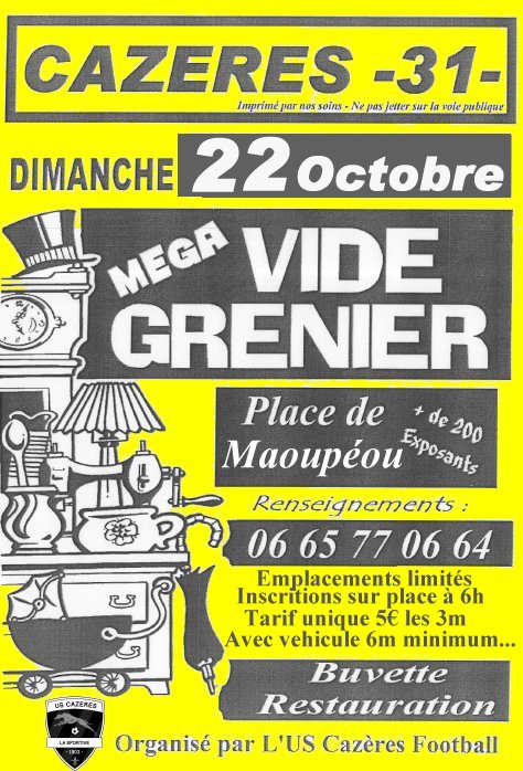 Dimanche 15 Oct. 2023 Un dimanche à Cazères (octobre 23) De 10h à 18h Le 15/10/2023 Place de l'Hôtel de Ville Sur réservation
