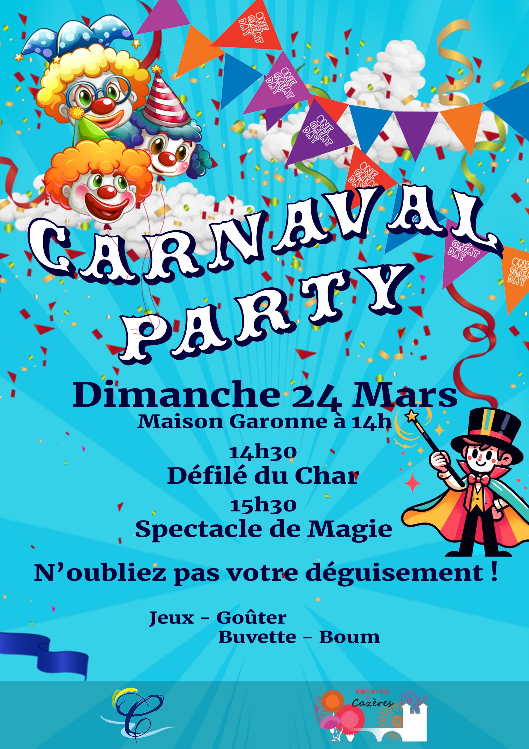 Dimanche 24 Mar. 2024 Carnaval Party À partir de 14 h 00 Le 24/03/2024 gratuit Maison Garonne Organisé par le Comité des Fêtes