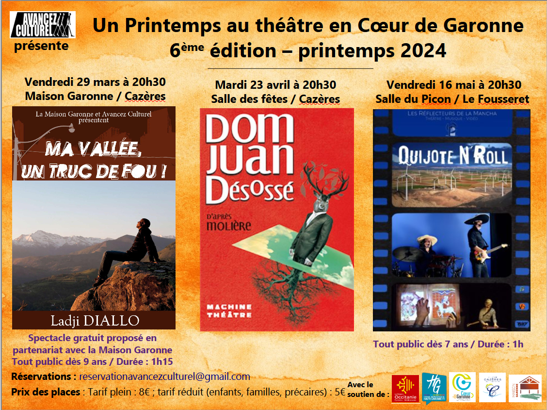 Vendredi 29 Mar. 2024 Un Printemps au théâtre en Coeur de Garonne À partir de 20 h 30 Du 29/03/2024 au 16/05/2024 Cazères et Le Fousseret