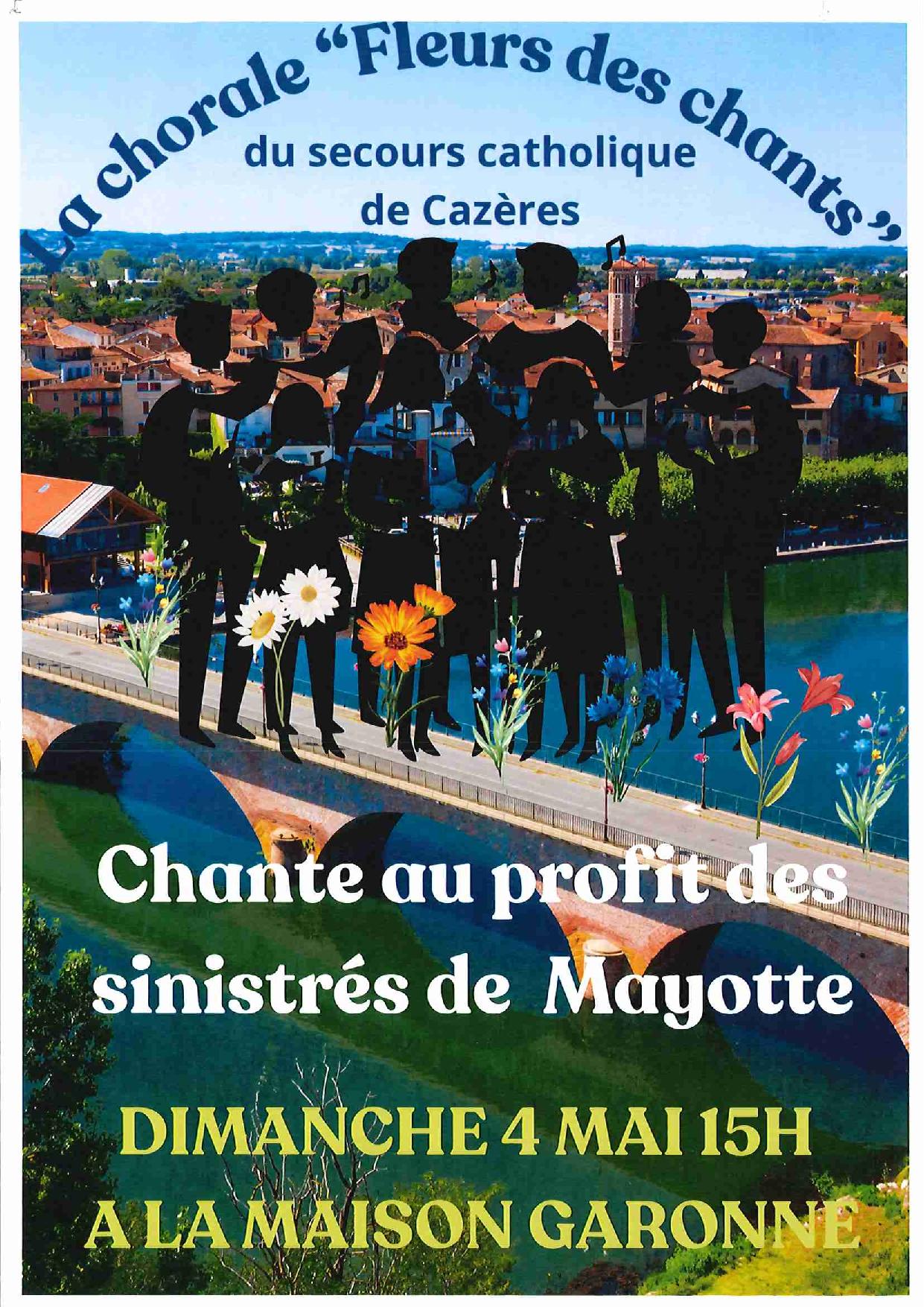 Dimanche 04 Mai 2025 Chorale « Fleurs des Chants » au profit des sinistrés de Mayotte À partir de 15 h Le 04/05/2025 Maison Garonne
