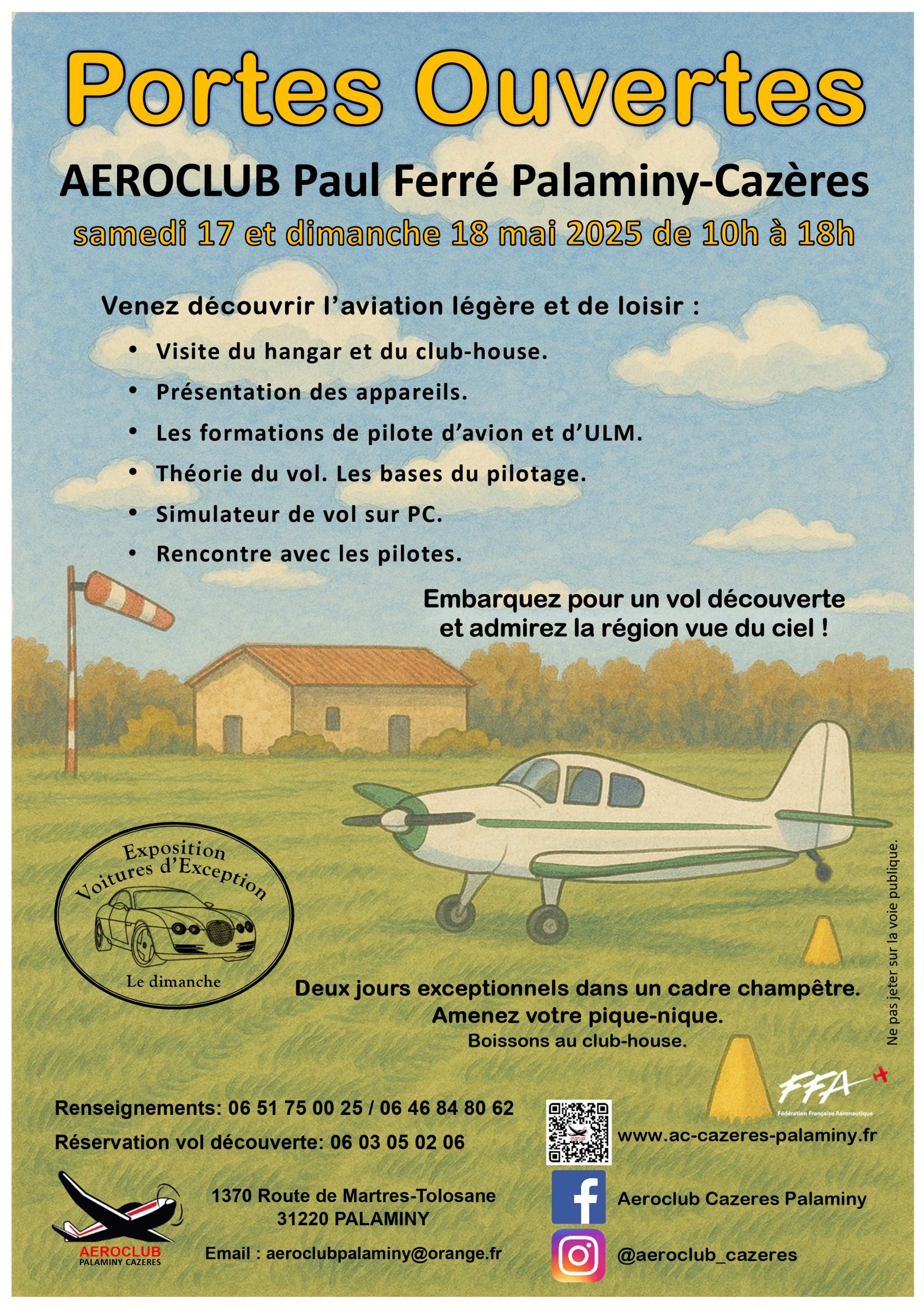 Samedi 17 Mai 2025 Portes ouvertes Aéroclub De 10h à 18h Du 17/05/2025 au 18/05/2025 Aéroclub Paul Ferré Palaminy-Cazères