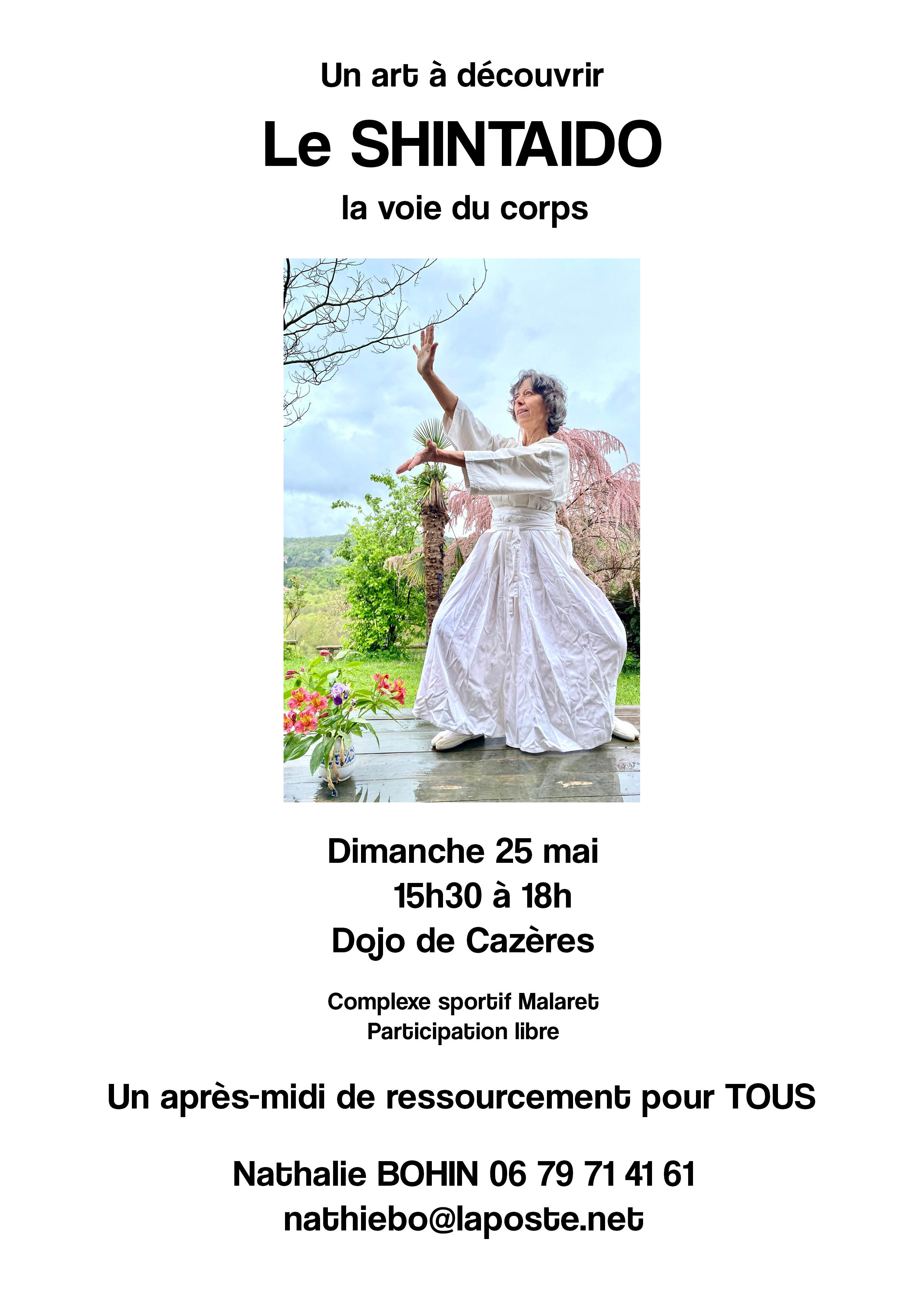 Dimanche 25 Mai 2025 Shintaido : la voie du corps De 15h30 à 18h Le 25/05/2025 participation libre Dojo de Malaret