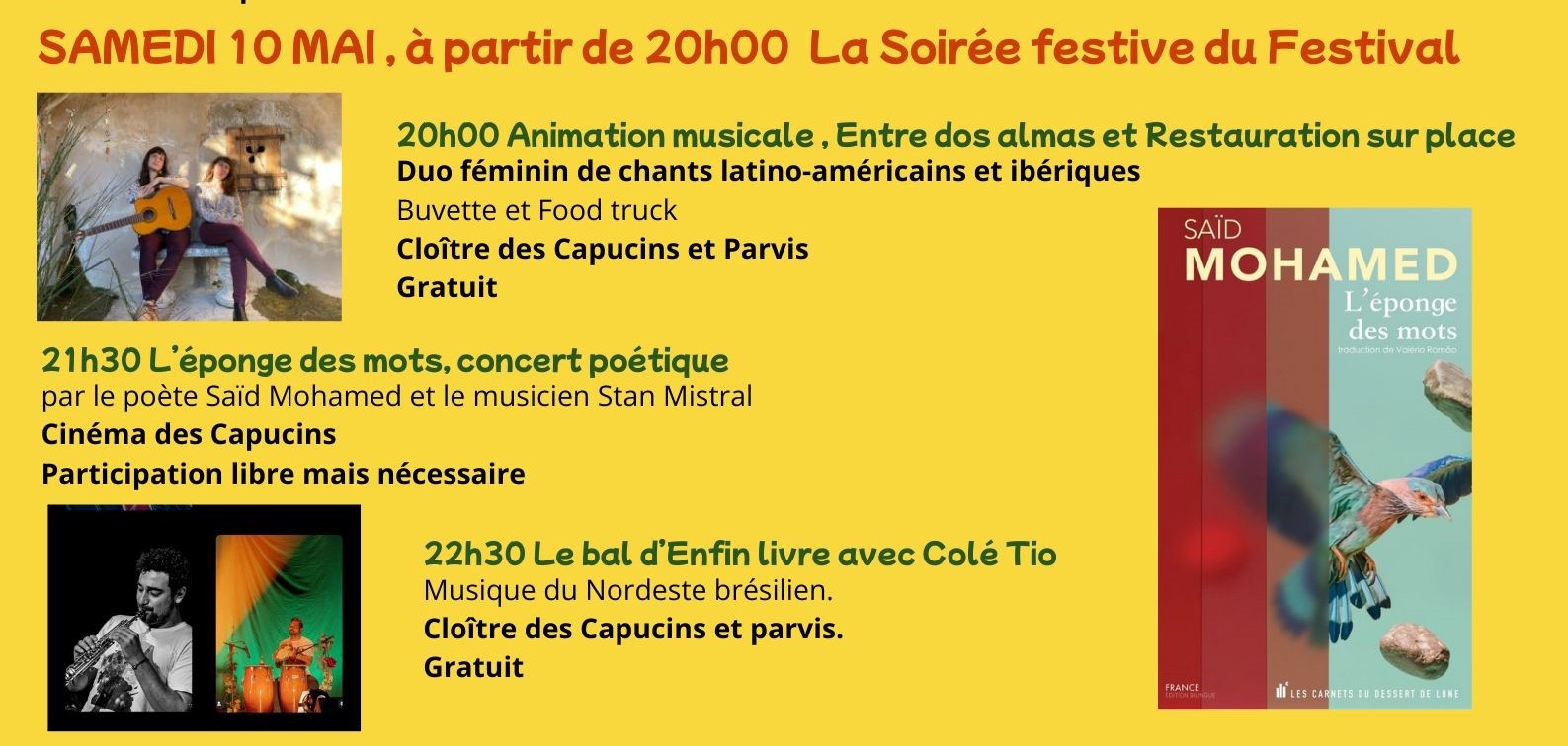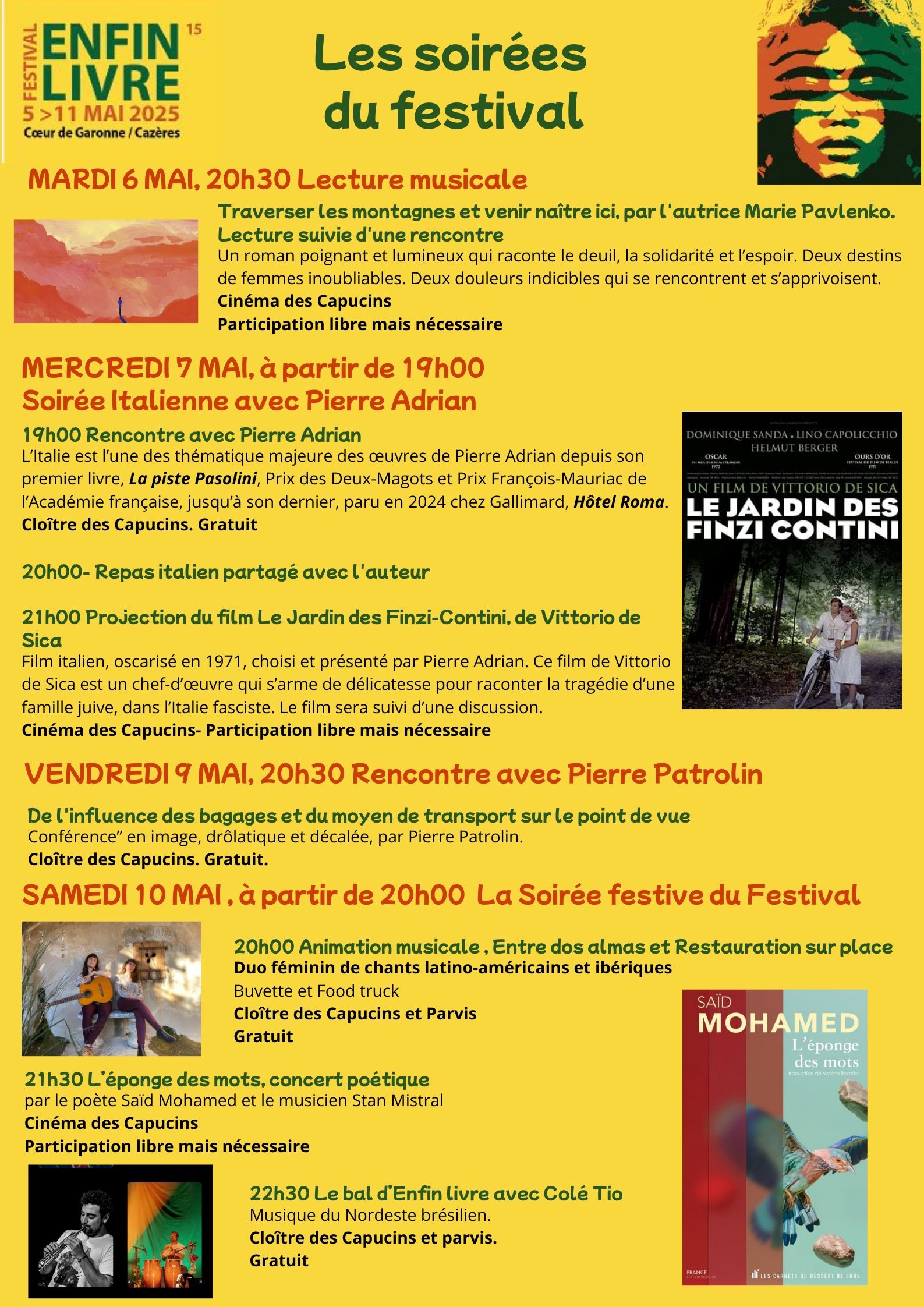 Mardi 06 Mai 2025 Les soirées du Festival Enfin Livre Du 06/05/2025 au 10/05/2025 GRATUIT CAZERES organisé par AVANCEZ CULTUREL