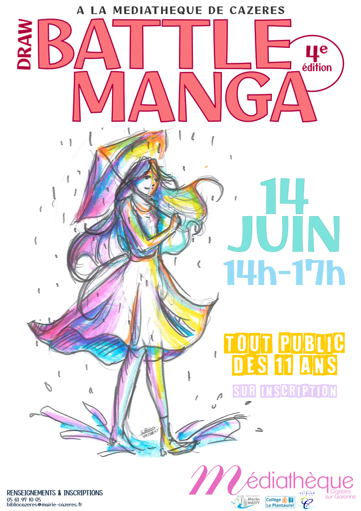 Samedi 14 Juin 2025 Draw : battle Manga 4ème édition De 14h à 17h Le 14/06/2025 GRATUIT Médiathèque tout public dès 11 ans