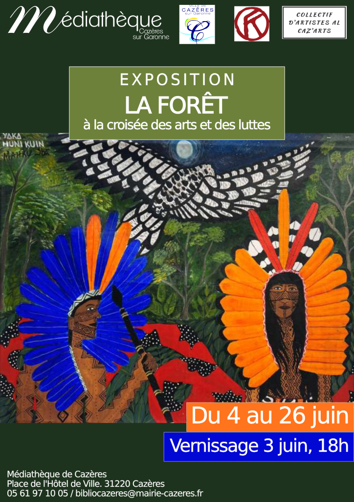 Mercredi 04 Juin 2025 Exposition « La forêt à la croisée des arts et des luttes » Du 04/06/2025 au 26/06/2025 Médiathèque par Al'Caz'arts et l’Association des Amis de Frans Krajcberg,