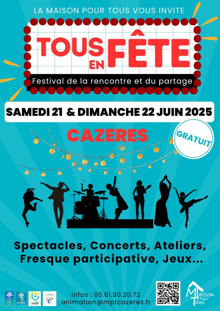 Samedi 21 Juin 2025 Tous en fête ! De 15h à 23h Du 21/06/2025 au 22/06/2025 GRATUIT Salle des Fêtes Organisé par la Maison pour Tous