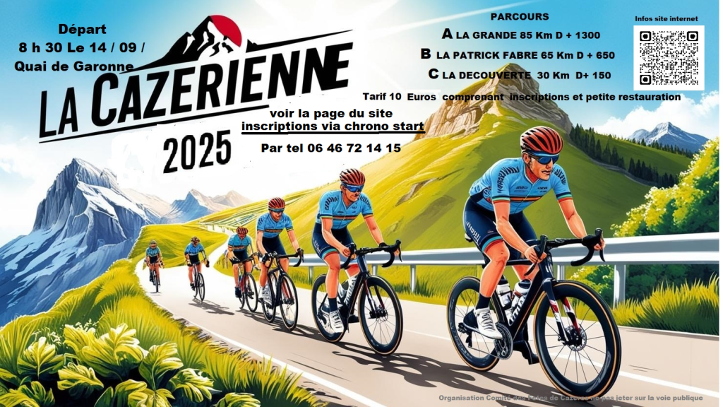 Dimanche 14 Sep. 2025 La Cazérienne 2025 À partir de 8h30 Le 14/09/2025 CAZERES Inscriptions au 06 46 72 14 15