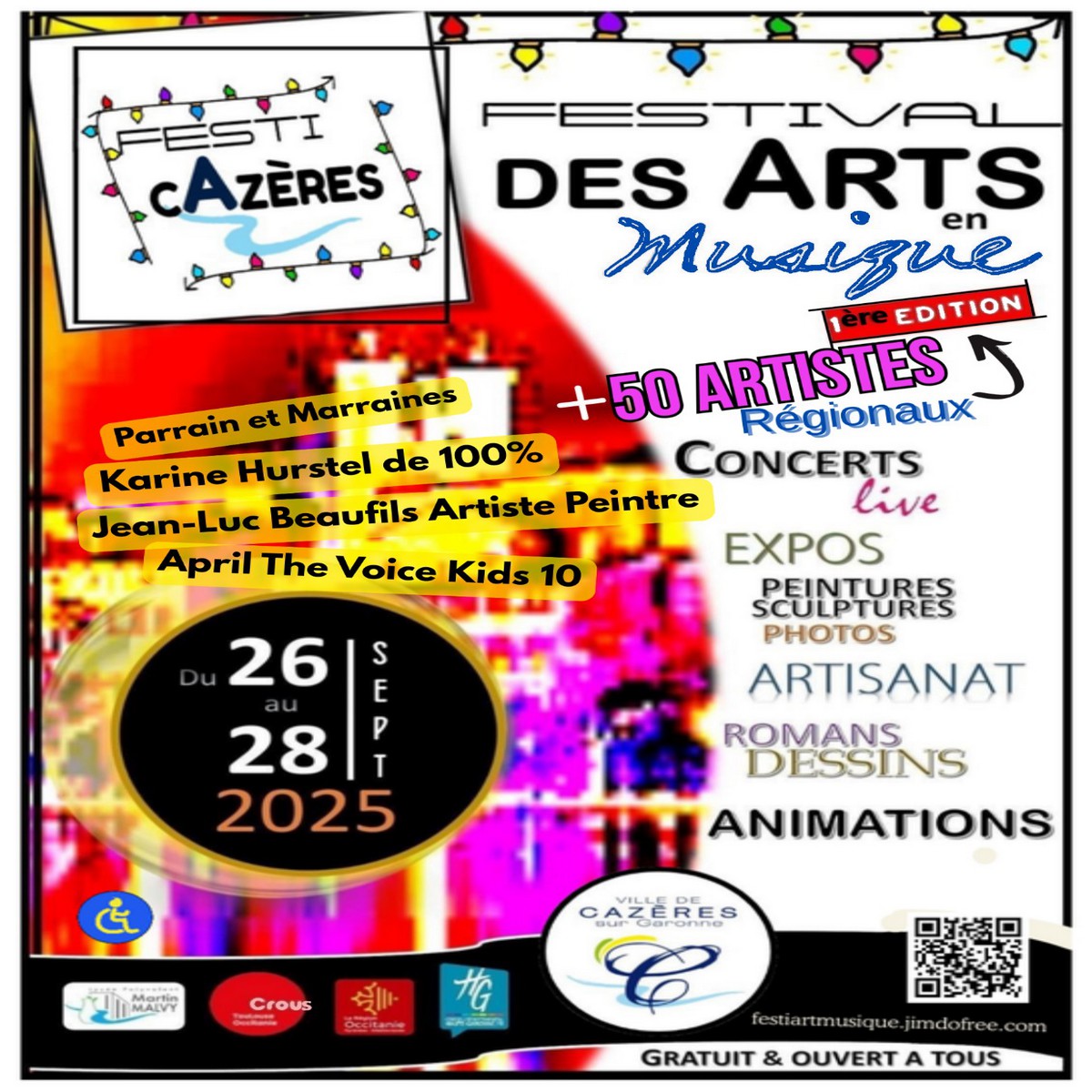 Vendredi 26 Sep. 2025 Festival des Arts en Musique – 1ère édition Du 26/09/2025 au 28/09/2025 GRATUIT CAZERES Organisé par l'association Festi Cazères