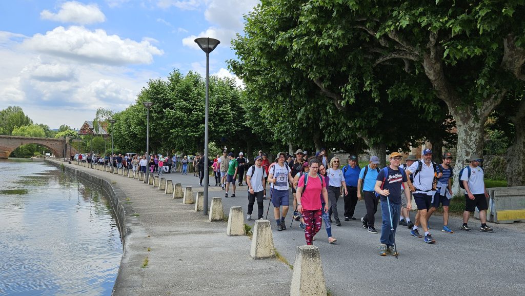 A 14h00, le départ a été donné pour rejoindre St Julien par la voie verte qui suit le lit de la Garonne. La centaine de marcheurs et les personnes à mobilité réduite étaient accompagnés par 3 irréductibles bipèdes de Cazères dont Jean-Michel Deluc élu de Cazères et Mme Gérard, élue à Boussens et sécurisé par une escorte de la police municipale.