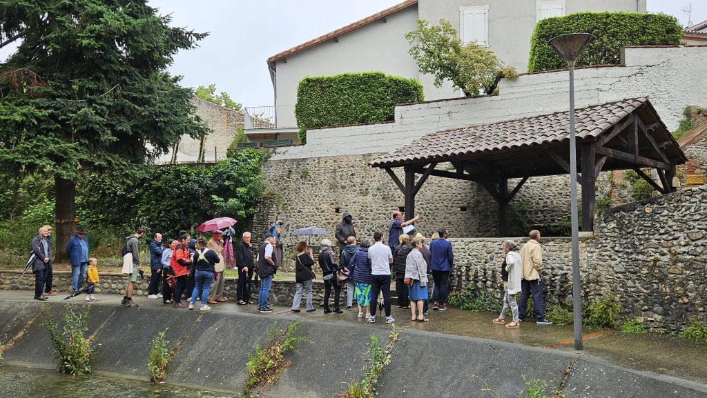 Robert Foch a commenté l’histoire de la Case de Montserrat puis nous sommes partis faire un « tour de ville », commenté par Monsieur Ressejac, pour découvrir les panneaux.