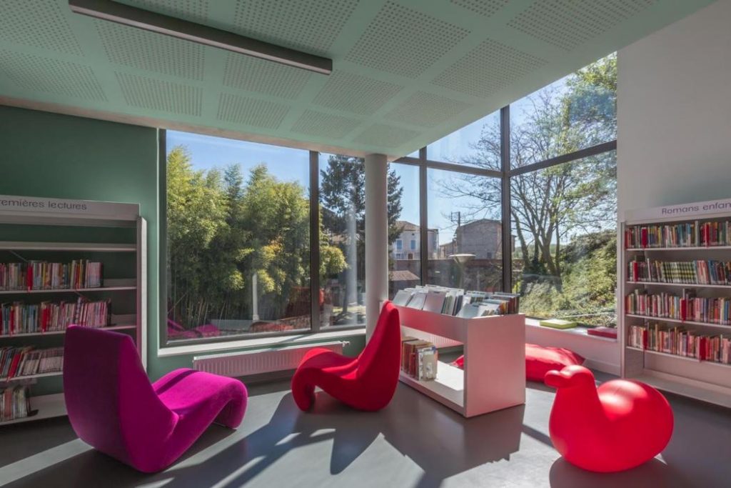 La médiathèque a pris ses quartiers sur la place de l’Hôtel de Ville le 11 avril 2015, avant elle était installée Case de Montserrat, actuellement France Services.