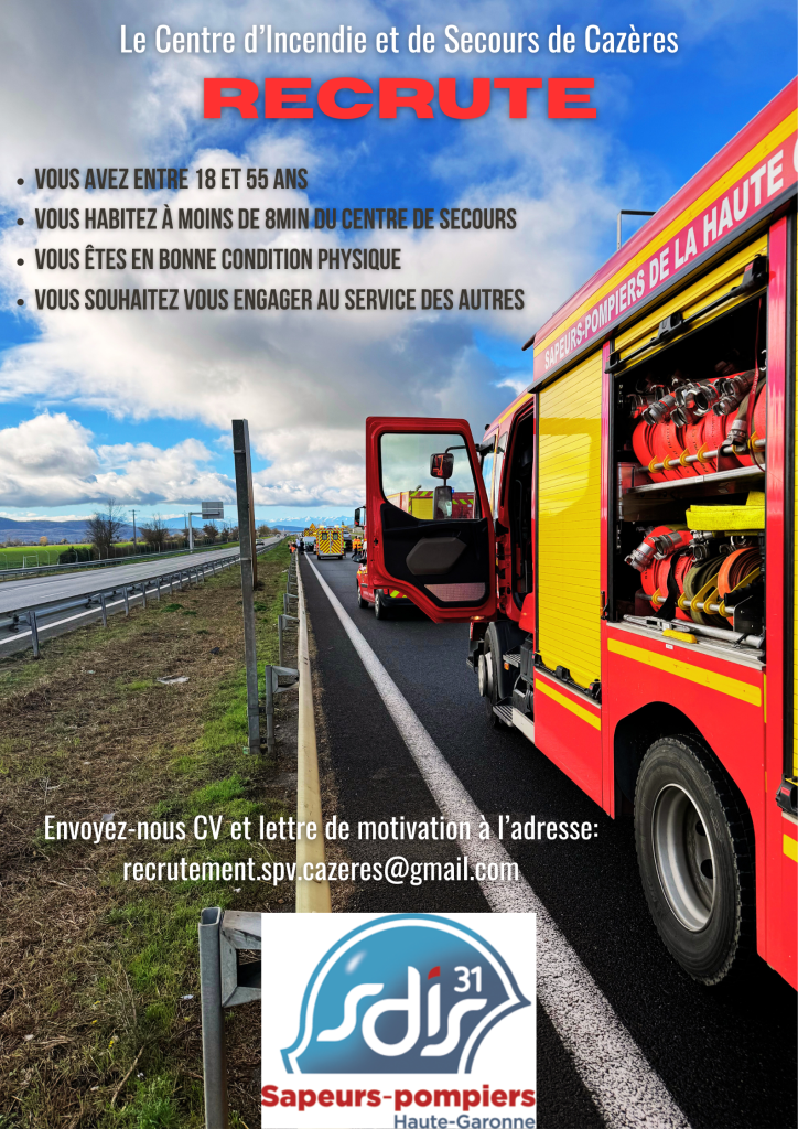 Pour tous renseignements complémentaires, vous pouvez écrire à recrutement.spv.cazeres@gmail.com