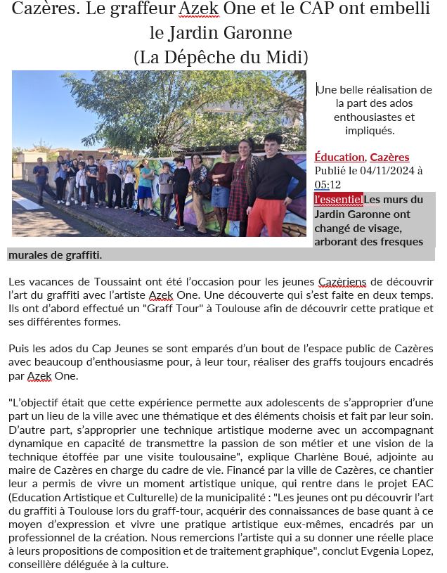 Les fresques du Cap Jeunes et du graffeur Azek One