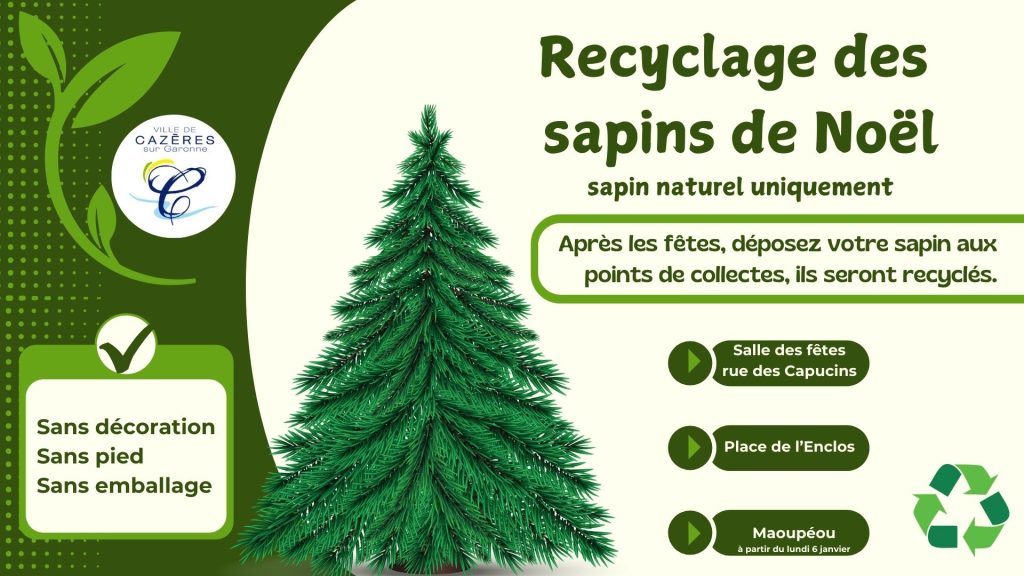 Pour recycler simplement votre sapin de Noël après les fêtes, déposez-le gratuitement dans les différents points de collectes installés par la municipalité, dès aujourd’hui :