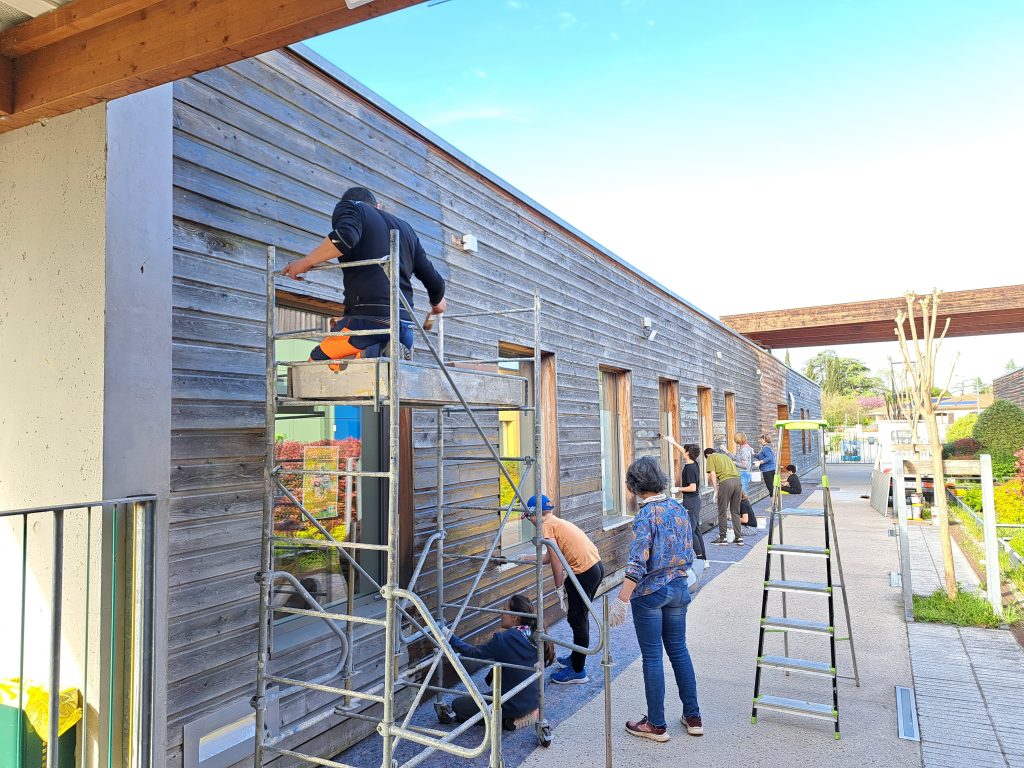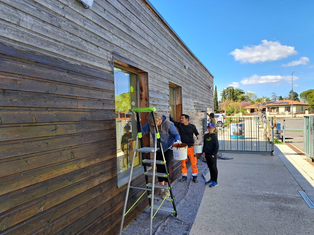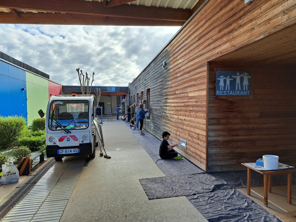 Pendant les vacances scolaires les jeunes ont participé à la rénovation de la lasure des façades en bois, encadrés par leurs animatrices Isabelle et Virginie, avec l’aide et les conseils de Monsieur Le Duy, agent des services techniques.